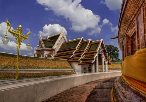 In der eleganten Gegend rund um die Sri Ayutthaya Road stehen sehr viele Regierungsgebäude und die aus italienischem Marmor erbaute königliche Residenz Wat Benjamabopit, die eine Mischung aus europäischer und thailändischer Architektur darstellt. Der Lumphini Park mit seinen Pavillons und zwei kleinen Seen ist eine Oase der Ruhe im Herzen der Stadt. Touristen, die keine Zeit dazu haben, den Rest von Thailand zu besuchen, sollten sich das Freilichtmuseum Ancient City anschauen. Dort kann man Nachbildungen von berühmten Gebäuden, Denkmälern und Tempeln aus dem ganzen Land sehen, die zum Teil in voller Größe nachgebaut wurden. Das Freilichtmuseum erstreckt sich insgesamt auf 112 Hektar und liegt 33 km südöstlich des Stadtzentrums.